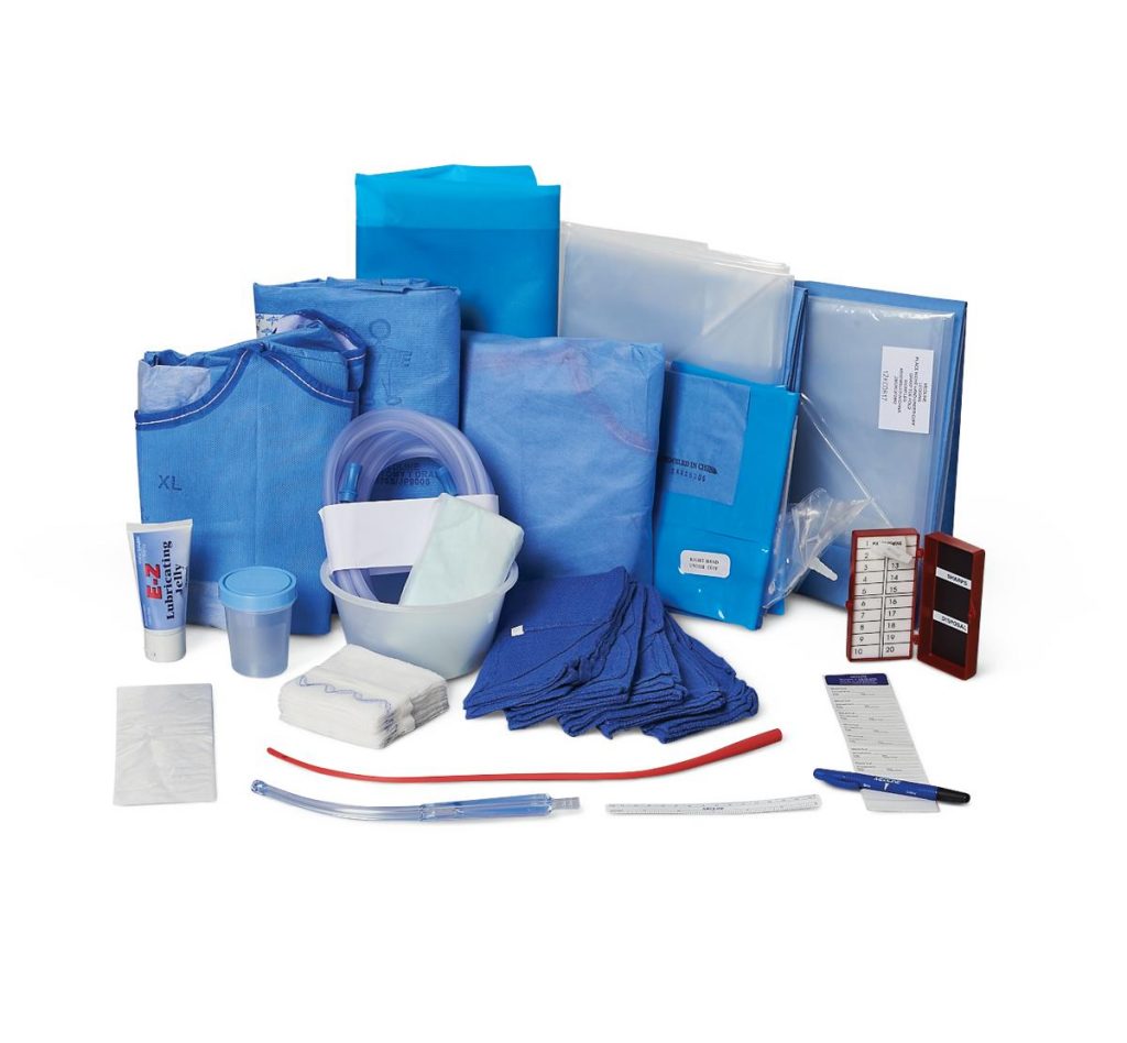 Conjunto estéril de batas, campos, gorros, botas y accesorios según procedimiento.