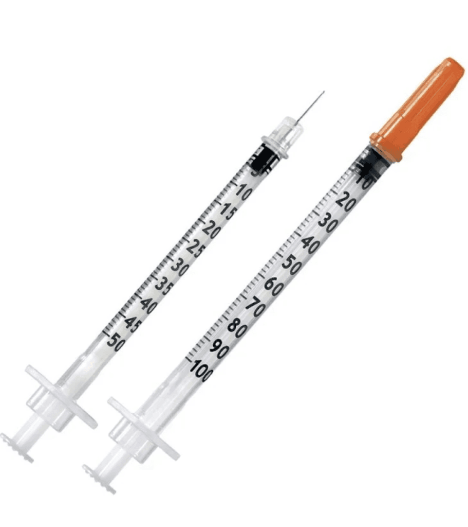 Jeringas de bajo volumen, con escala en unidades y aguja fija.